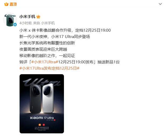 近日,在一场直播中,卢伟冰谈到了小米17 Ultra是否会涨价的线年底至今差不多三年间,AI迎来了爆发式的增长。根据整体判断,2025、2026、2027三年都会是内存成本上涨点。内存价格的猛涨,进而会带来手机成本的大幅上升。此前小米15 Ultra发布时,官方曾称这是“最后一次6499元”。他直言,当时并没有完全考虑到内存,仅仅是基于处理器成本、相机配置上涨而作出的判断。而17 Ultra更是叠加了内存的上涨,且涨幅远高于处理器、相机等。因此,“小米17 Ultra一定会涨价,而且我觉得还要涨得有点多。但是跟内存成本上涨(比起来),我觉得还是低的。”(财联社、快科技)